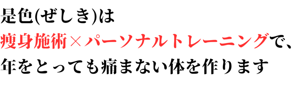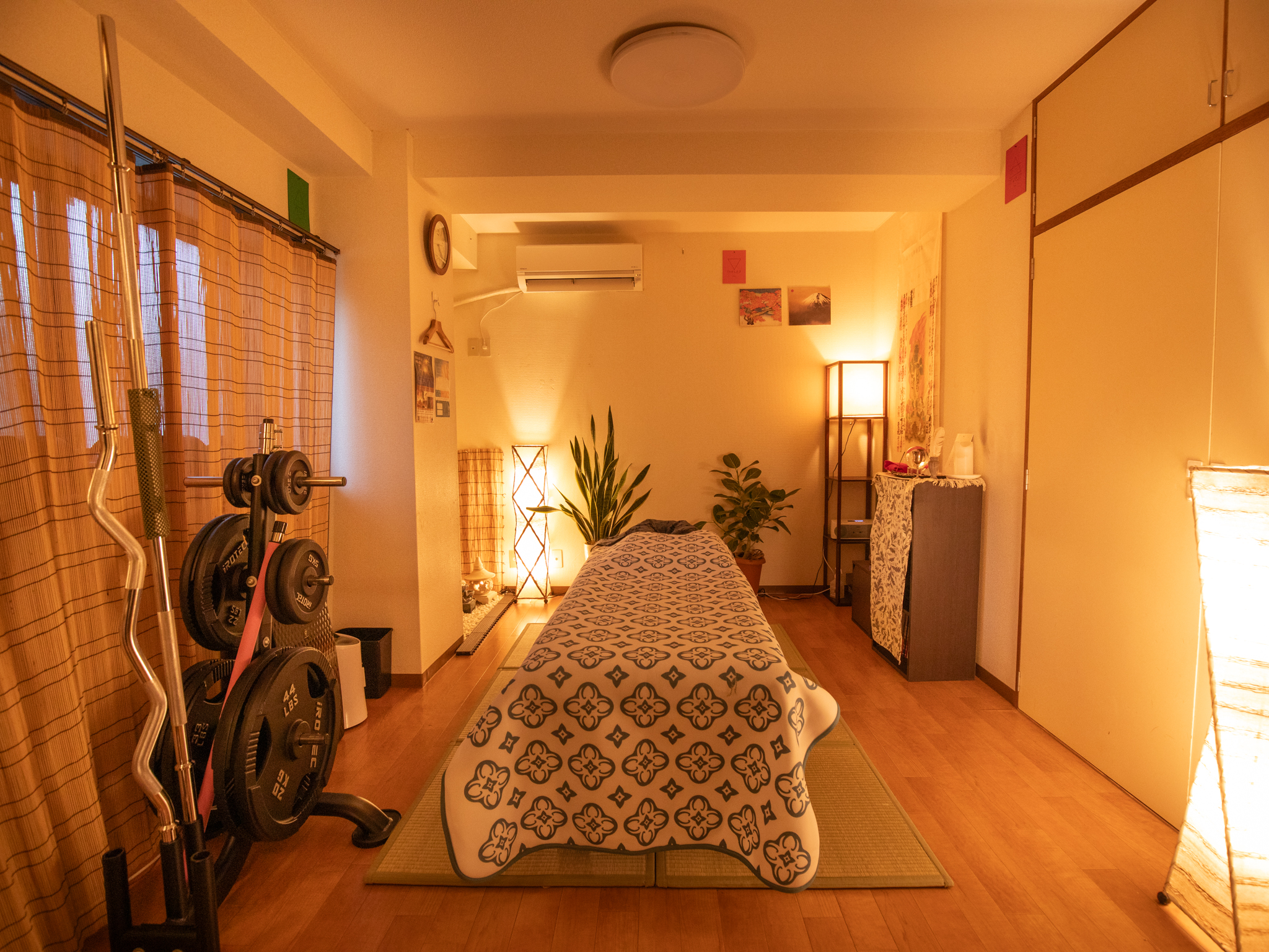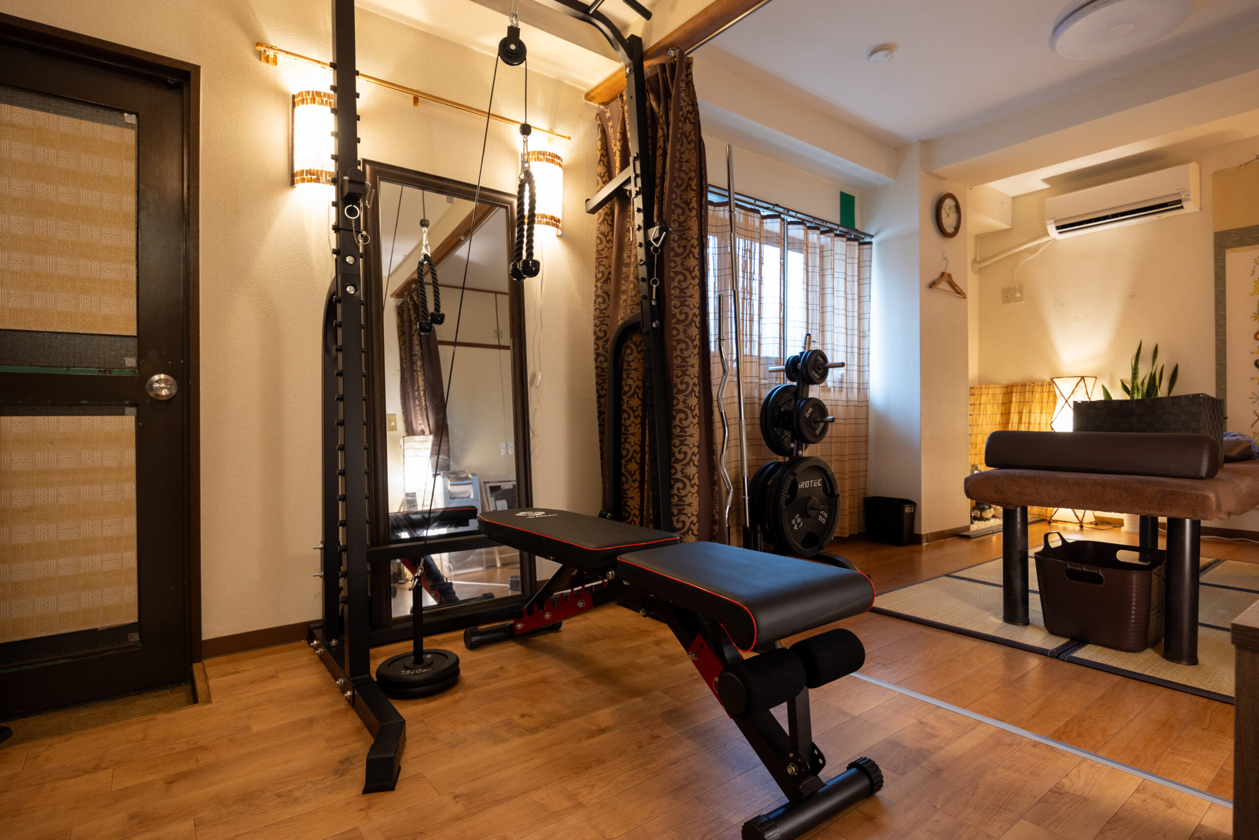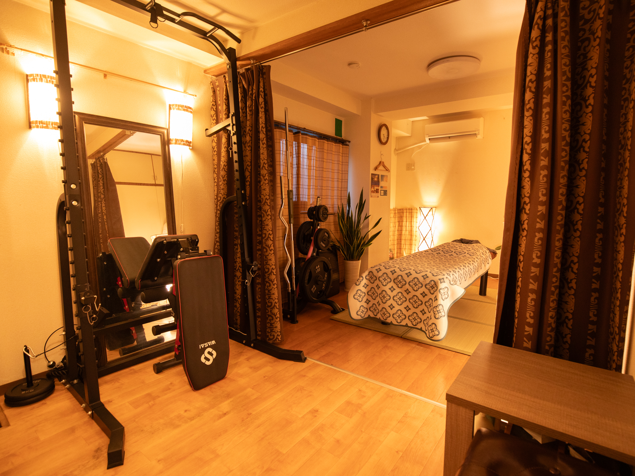 是色は、施術だけでなく院内のジムスペースでトレーニングをする事により、同じ痛みや不調が出ないように整体×トレーニングのハイブリット施術を行います。